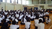 各学年代表生徒から今学期を振り返っての話をしていただき、先生から夏休みを迎えるにあたって、表彰、吹奏楽部演奏がありました。長い夏休みになりますが、元気に充実した時間を過ごして欲しいと思います。